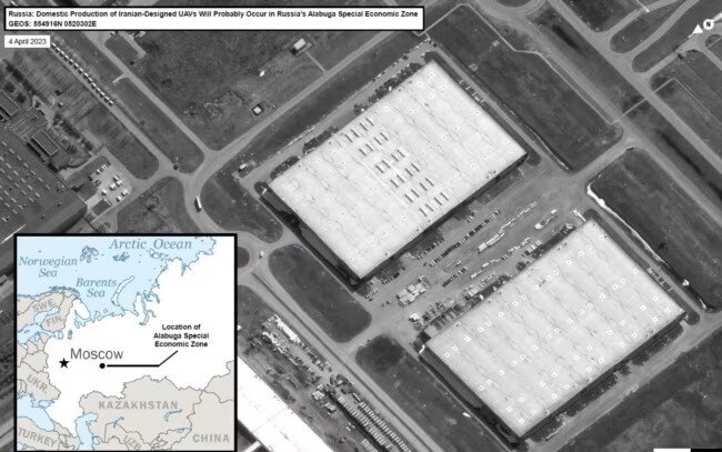 کاخ سفید تصاویر ماهوارهای منتشر و ادعا کرده است این تصاویر محل برنامهریزی شده کارخانه تولید پهپاد در منطقه ویژه اقتصادی آلابوگا روسیه را نشان می دهند.