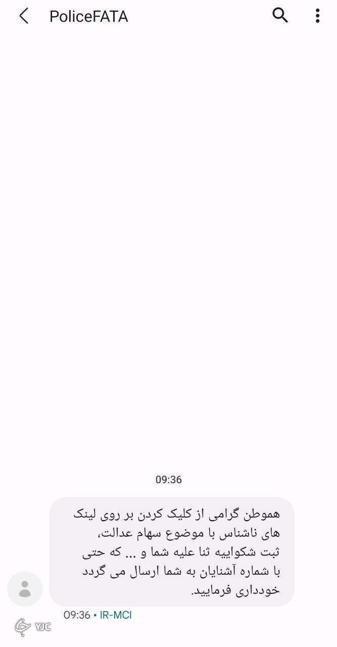 بنابر این با توجه به افزایش دربرگیری این نوع کلاهبرداریها با نام سهام عدالت و کلید واژه واریز سود، روز گذشته هم پلیس فتا برای شهروندان پیامک هشدار ارسال کرد.