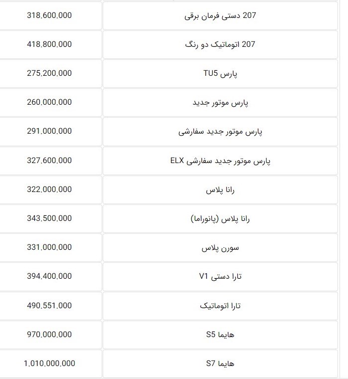 قیمت نهایی کارخانه ۲۵ محصول ایران خودرو / دنا اتوماتیک جوانان ۵۹۰ میلیون تومان شد! + جدول