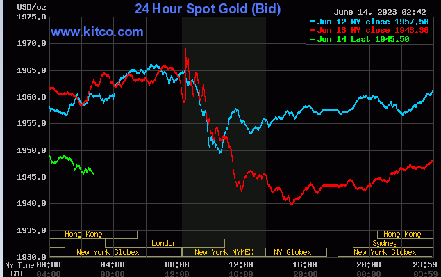 بهای هر اونس طلا در لحظه تنظیم این گزارش با 18 دلار کاهش به 1946 دلار رسید.