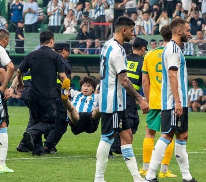 تیم ملی آرژانتین روز پنجشنبه در دیداری دوستانه که در پکن برگزار شد با نتیجه 2 بر صفر استرالیا را شکست داد. در یکی از لحظات این دیدار، یکی از هواداران چینی با پیراهن تیم ملی آرژانتین که پشت آن نام مسی درج شده بود، به میدان رفت.