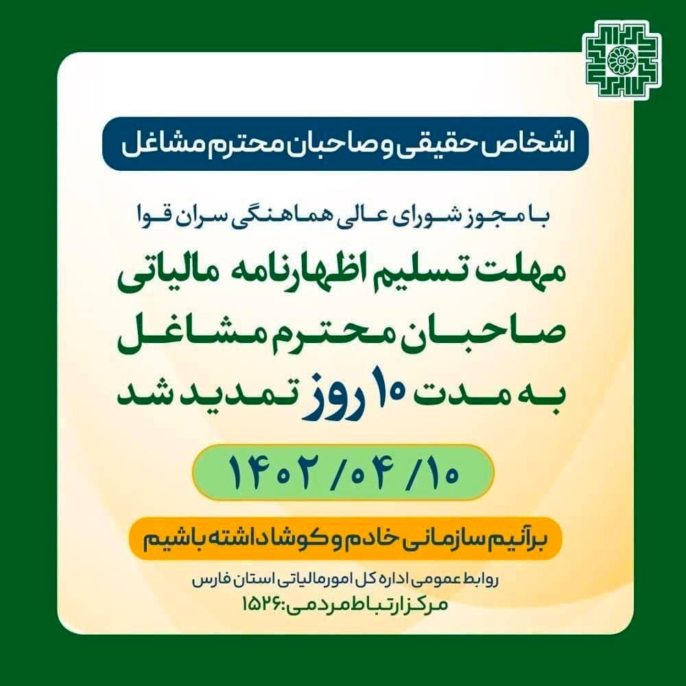 مهلت ارائه اظهارنامههای مالیاتی ۱۰ روز تمدید شد