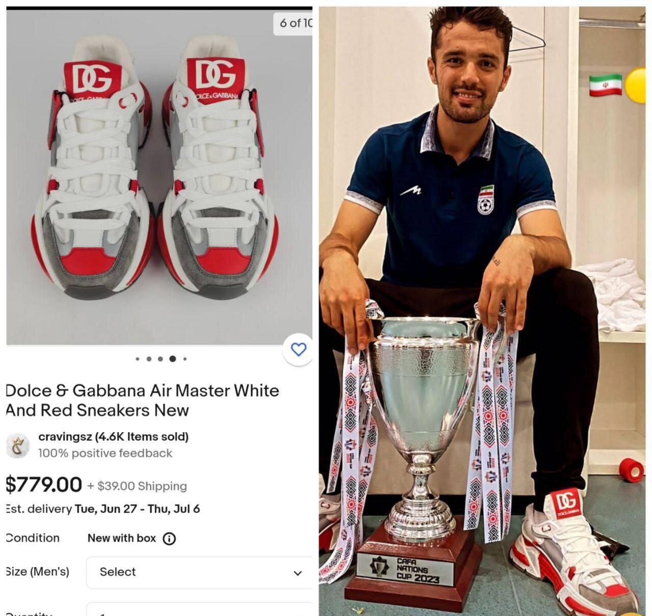 در این بین عکس امید نورافکن بیش از همه حاشیه‌ساز شده است. چرا که مدافع باشگاه سپاهان در این عکس، کفشی از برند گران‌قیمت دولچه گابانا پوشیده است که در سایت رسمی این برند چیزی حدود ۴۰ میلیون تومان قیمت دارد!