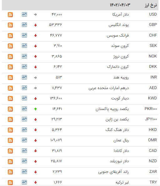 کاهش نرخ تمامی ارزها 3 تیر 1402