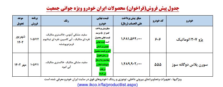 اطلاعیه پیش فروش ایران خودرو برای مادران در تابستان ۱۴۰۲ منتشر شد. بر این اساس مراحل تکمیل ثبت نام سورن پلاس بنزینی و پژو ۲۰۷ اتوماتیک با موعد تحویل مهرماه و شهریور ماه از دیروز آغاز شده است که در ادامه جزییات آن را میخوانید.
