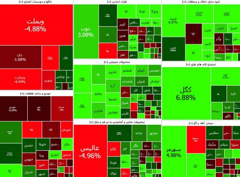 در مقابل مجتمع جهان فولاد سیرجان (فجهان)، فولاد هرمزگان جنوب (هرمز)، نفت ایرانول (شرانل) و شرکت سرمایه گذایر صبا تامین (صبا) و بهار رز عالیس چناران (عالیس) با تأثیر منفی بر این شاخص همراه بودند.