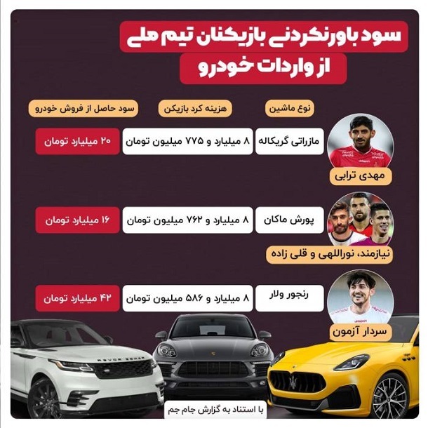 سود بازیکنان تیم ملی فوتبال از واردات خودرو چقدر بود؟ + تصویر