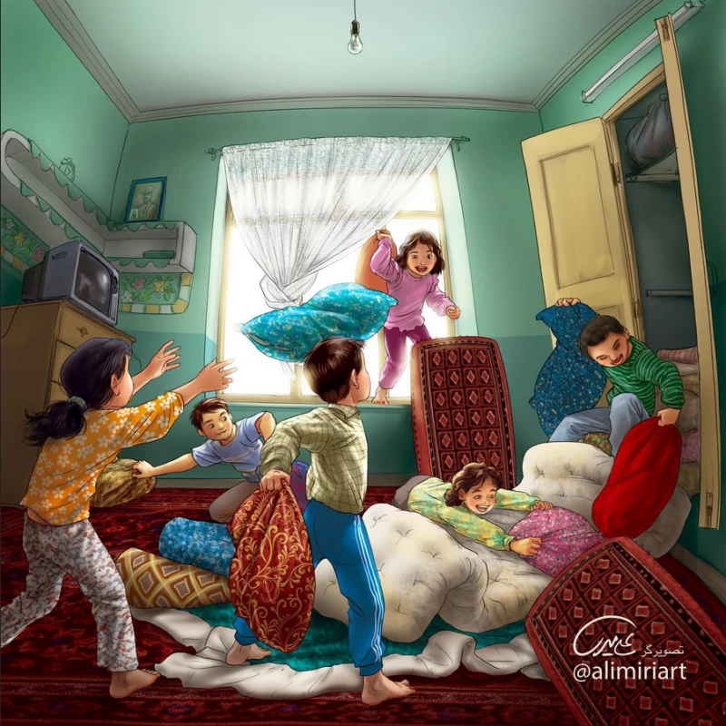 همه رو روی هم میچیدیم و میپریدیم روشون ی دفه مثه سرسره سر میخوردیم پایین ی دفه با صدای مامان به خودمون میومدیم و تند تند کل اتاق و تمیز میکردیم.