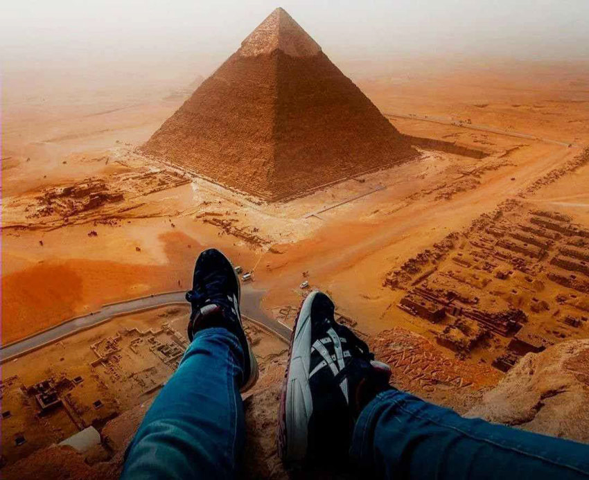 ک جوان ۱۸ ساله به طور غیر قانونی به بالای یکی از عجایب هفتگانه جهان - هرم خئوپس صعود کرد، در طبقه پایین بلافاصله توسط پلیس محلی بازداشت شد، اما او توانست این عکس شگفت انگیز را بندازد.
