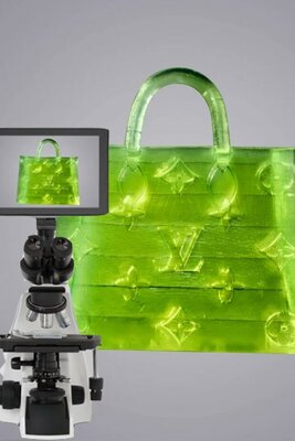 گروه هنری MSCHF در بروکلین، کیف دستی «لویی ویتون» را در ابعاد میکروسکوپی که از سوراخ سوزن هم رد میشود، طراحی کردند.
