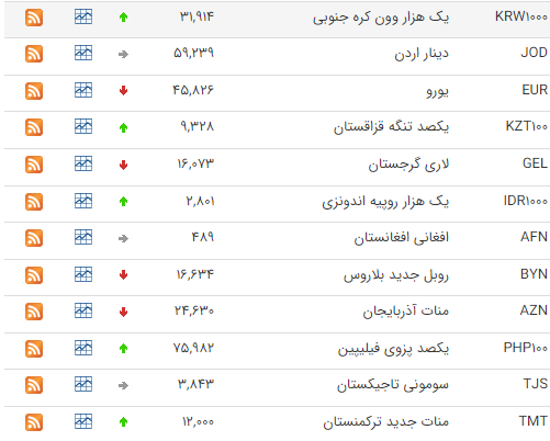 در همین سایت قیمت یورو توافقی نیز با یک کاهش 25 تومانی نسبت به روز گذشته، رقم میانگین 45 هزار و 32 تومان برای آن درج شده است.