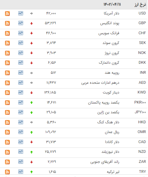 قیمت دلار و یورو در بازارهای مختلف 11 تیر 1402