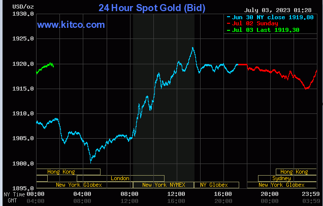 قیمت هر اونس طلا امروز با 2 دلار نوسان در لحظه تنظیم این گزارش به 1920 دلار رسید.