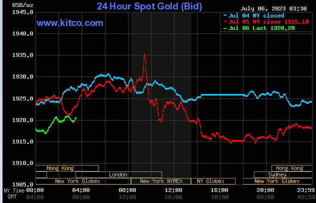 بهای هر اونس طلا تا لحظه تنظیم این گزارش با 3 دلار کاهش به 1920 دلار رسید.