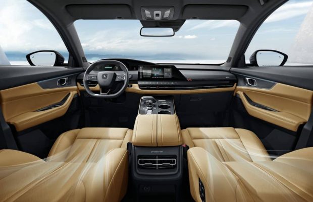 به کابین چانگان یونی کی وارداتی سایپا که می‌رسیم، داشبورد چندلایه آن در مرکز توجه قرار می‌گیرد. در مرکز این داشبورد یک نمایشگر ۱۲.۳ اینچی مختص به سیستم اطلاعات و سرگرمی در قابی ذوزنقه‌مانند قرار دارد. زیر همین نمایشگر، کنترل‌های لمسی مربوط به سیستم تهویه به‌علاوه دریچه‌های هوای مستطیلی جا گرفته‌اند. پشت فرمان هم که هر دو قسمت بالا و پایین آن تخت هستند، صفحه آمپر دیجیتال پیدا می‌شود. با توجه به تصاویر، سه نمایشگر کوچک کل صفحه آمپر دیجیتال را تشکیل می‌دهند.