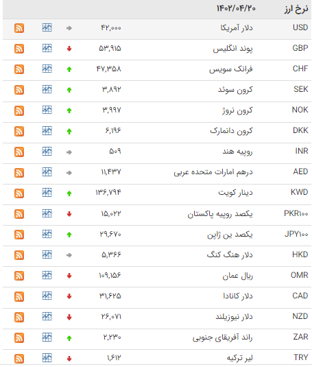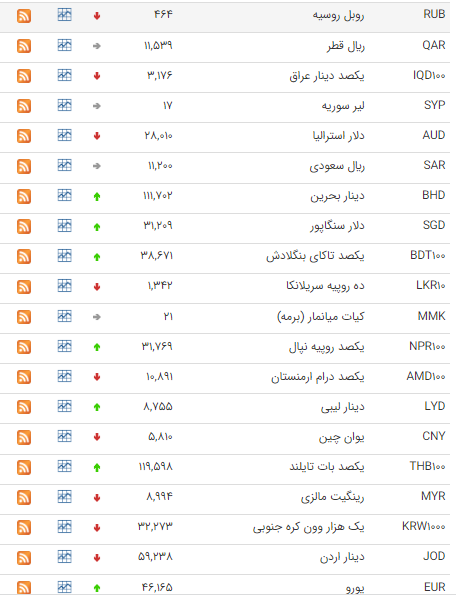 نرخ رسمی درهم امارات متحده عربی و ریال قطر هم بدون تغییر باقی ماند.
