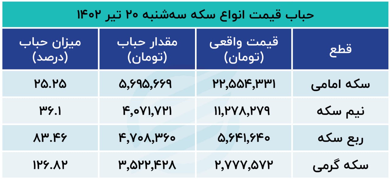 این اتفاق در حالی است که سهشنبه هفته گذشته حباب سکه در حدود ۳۰ درصد قرار داشت.