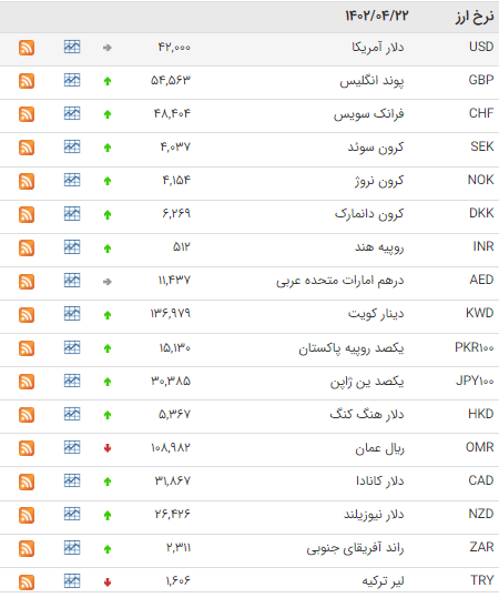 قیمت دلار و یورو در بازارهای مخنلف 22 تیرماه 1402