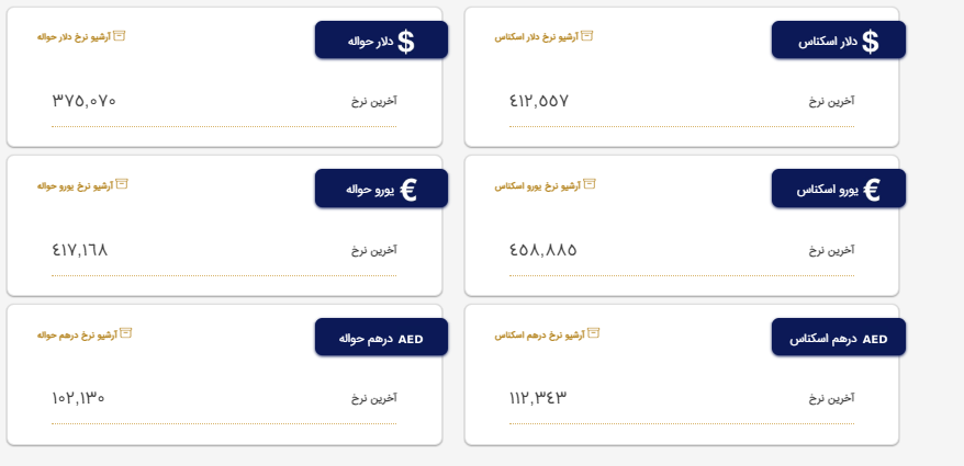 در همین سایت قیمت یورو به صورت توافقی 45 هزار و 780 تومان درج شده که نسبت به دیروز افزایش بیش از 400 تومانی را نشان میدهد. همچنین قیمت درهم امارات به صورت توافقی بطور میانگین 13 هزار و 247 تومان است که کاهش بسیار اندکی را نسبت به دیروز نشان میدهد.