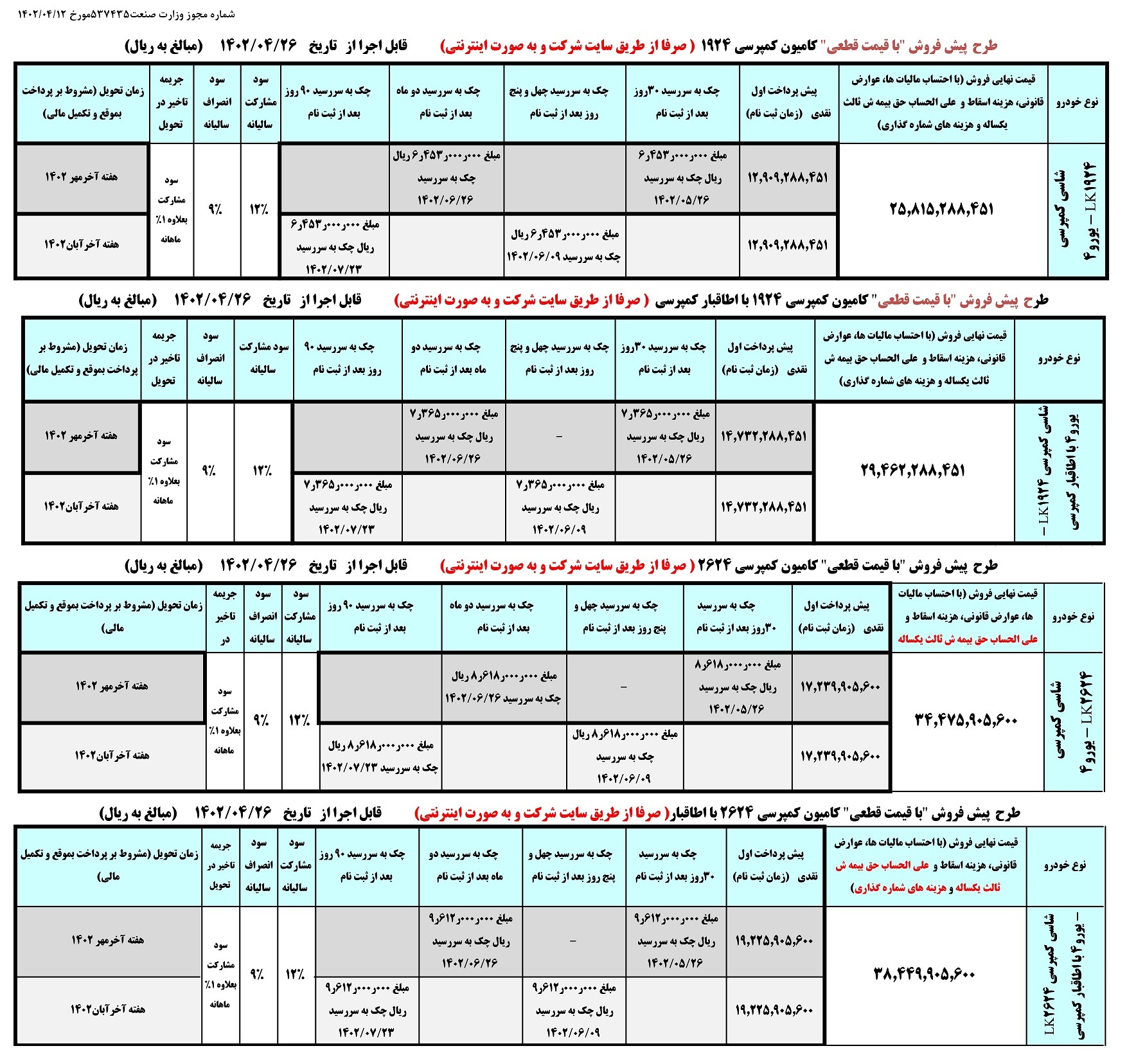 متقاضیان خرید کامیون‌های کمپرسی ۱۹۲۴ و ۲۶۲۴ می‌توانند از ساعت ۱۰ صبح دوشنبه با مراجعه به سایت فروش رسمی شرکت ایران خودرو دیزل به نشانی esale.ikd.ir ثبت نام کنند.