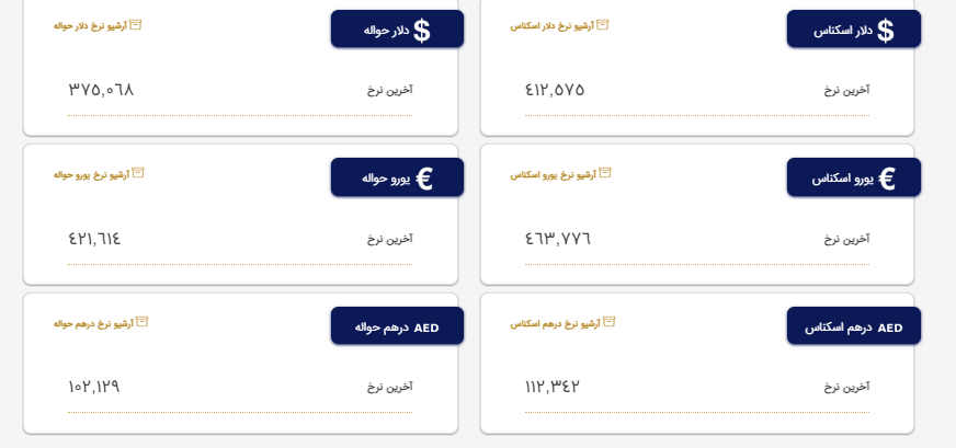 نرخ رسمی درهم امارات متحده عربی و یکصد دینار عراق هم ثابت باقی ماند.