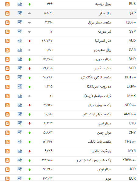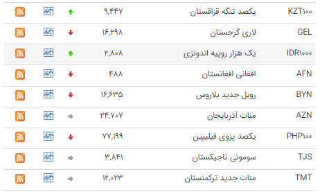 بر این اساس نرخ رسمی یورو، لیر ترکیه و یوان چین افزایش و نرخ پوند انگلیس، یکصد ین ژاپن، دلار کانادا، دلار استرالیا و افغانی افغانستان کاهش یافت.