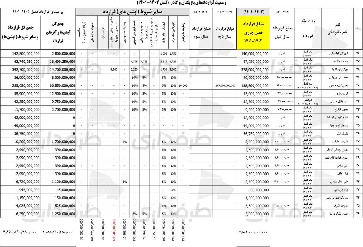 اسناد رقم قراداد بازیکنان پرسپولیس و کادر فنی این تیم مشخص شد.