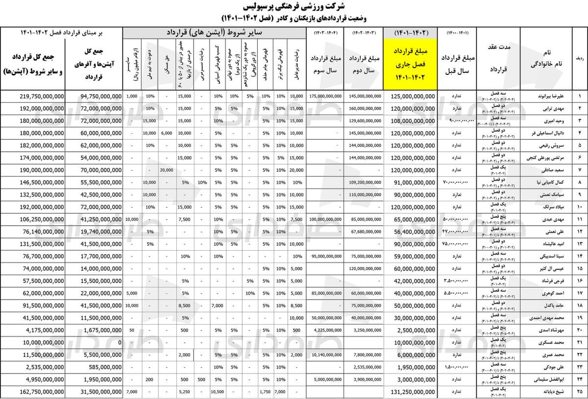 مبلغ قرارداد تمام بازیکنان پرسپولیس لو رفت! +عکس