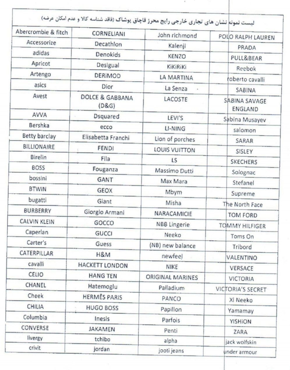 فهرست جدید برندهای پوشاک قاچاق اعلام شد + جدول