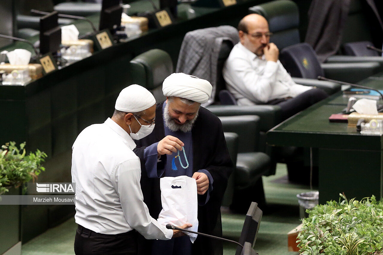 تصاویری از یک نماینده مجلس که به تازگی از سفر حج بازگشته منتشر شده که در حال پخش سوغاتی مکه در صحن مجلس است.
