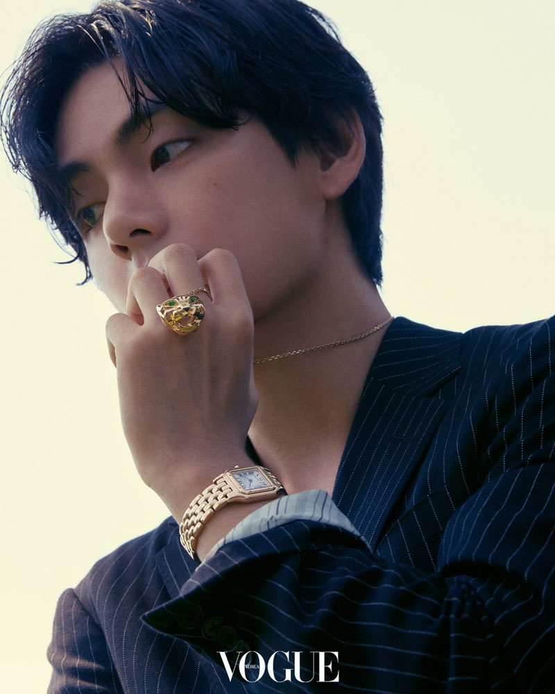 تهیونگ در اولین کمپین خود برای کارتیه، قطعاتی از مجموعه جواهرات نمادین «Panthere» را به نمایش میگذارد: یک حلقه الماس، یک دستبند پلنگ دو تکه، و ساعت «Révélation d’une Panthère» از این برند.