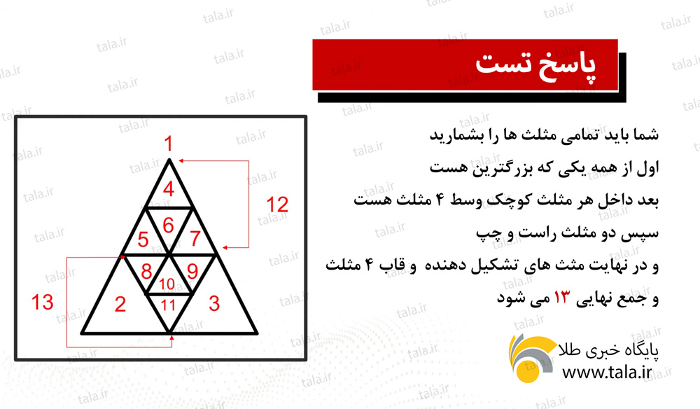 سایت طلا : شما باید به سرعت بگویید در شکل فوق چند مثلث قراردارد ؟ البته این تست بسیار ساده است ولی چند نکته ی انحرافی در آن وجود دارد
