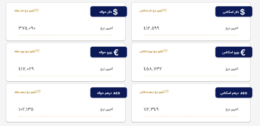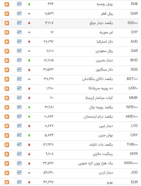 درهم امارات عربی متحده ۱۰۱ هزار و ۲۱۵ ریال خریداری و ۱۰۲ هزار و ۱۳۵ ریال فروخته شد.
