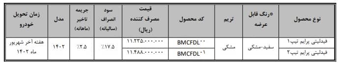 فیدلیتی پرایم ۵ نفره و ۷ نفره در پیش فروش بهمن موتور به قیمت نمایندگی ۱۴۰۲ عرضه شده است. اختلاف قیمت این دو خودرو با قیمت روز بازار آزاد خودروهای مونتاژی مشخص میکند، خریداران تیپ ۱ حوالی ۴۹۷ میلیون و تیپ ۲ نزدیک به ۵۴۲ میلیون تومان سود خواهند کرد. البته این سود غیرقطعی است و ممکن است قیمت بازار آزاد تا موعد تحویل که هفته آخرین شهریورماه میباشد تغییر کند.