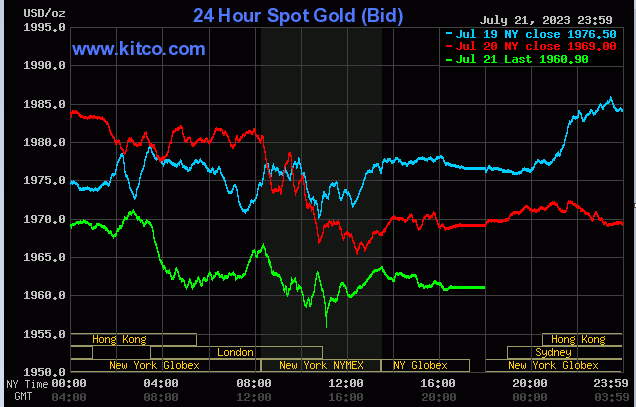 قیمت طلا در حالی در روزی که گذشت کاهشی بود که روز پنجشنبه با رسیدن به قله ۱۹۸۷ دلاری بالاترین سطح قیمتی خود در دو ماه گذشته را به ثبت رسانده بود.