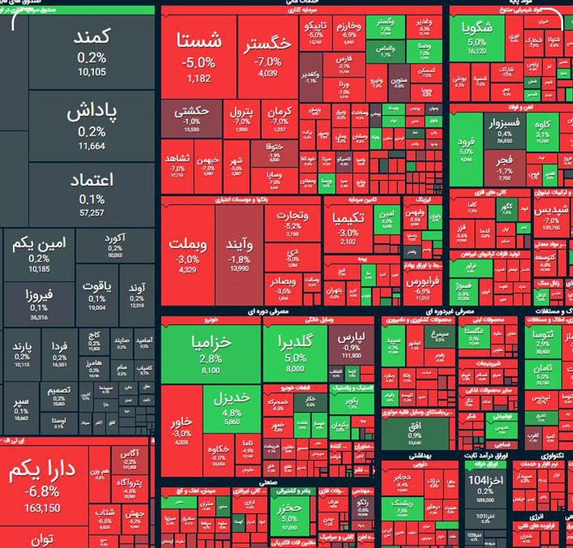 شاخص کل بورس با ریزش ۳۳ هزار و ۲۸۱ واحدی در تراز یک میلیون و ۹۸۳ هزار و ۱۰۳ واحدی ایستاد.