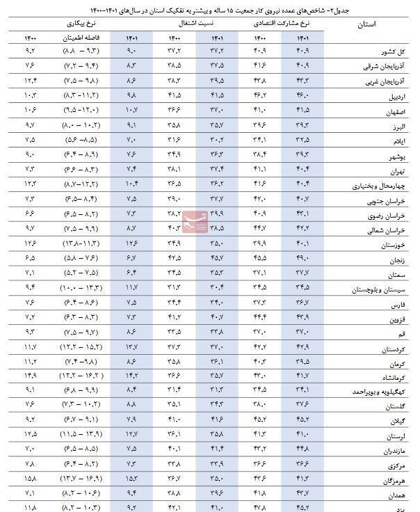 سقوط نرخ بیکاری در ۱۷ استان + جدول