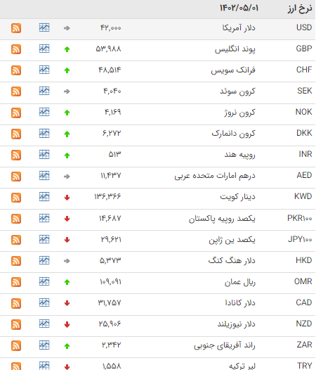 بانک مرکزی امروز نرخ هر دلار را ۴۲ هزار ریال، پوند را ۵۳ هزار و ۹۸۸ ریال و یورو را ۴۶ هزار و ۷۴۲ ریال اعلام کرد.