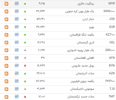در همین سایت قیمت یورو توافقی نیز در سقف کانال 45 هزار تومانی قرار گرفته و با افزایش 54 تومانی نسبت به روز گذشته رقم میانگین 45 هزار و 926 تومان برای آن درج شده است.