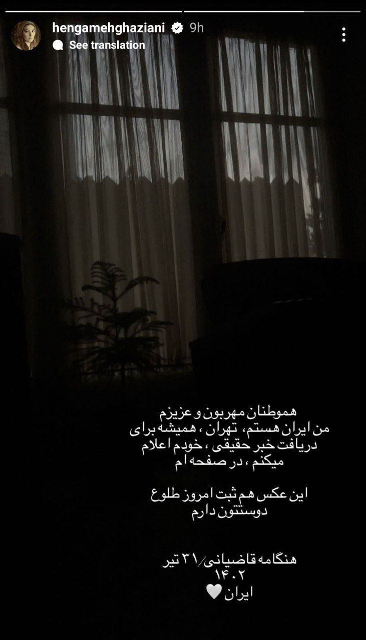 هنگامه قاضیانی قبلا هم شایعه مهاجرتش به خارج از کشور را رد کرده و گفته بود که اگر من اینجا ماندم، درحالی که میشد بروم، دلیل این نیست که اگر ایرانیها مهاجرت کردند کار خطایی کردهاند. آنها هم جای دیگری جز ایران در قلبشان نیست.