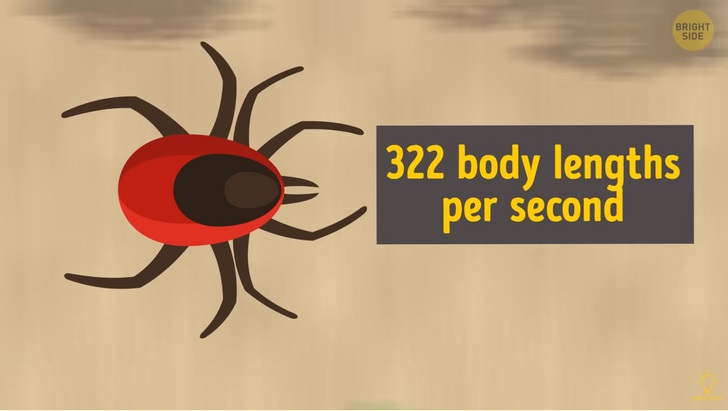 بنابراین سوسک های ببری واقعاً سریع اند، اما یک نوع مایت به خصوص وجود دارد که سرعت حرکت آن حدود ۲،۰۹۲ کیلومتر بر ساعت است. این مایت که جثه ای به اندازه ی یک دانه ی کنجد دارد می تواند ۳۲۲ واحد از طول بدن خود را در هر ثانیه حرکت دهد. این در حالی است که اغلب گربه ها عمده ی طول روز به اندازه ی صفر برابر طول بدن خود می دوند.