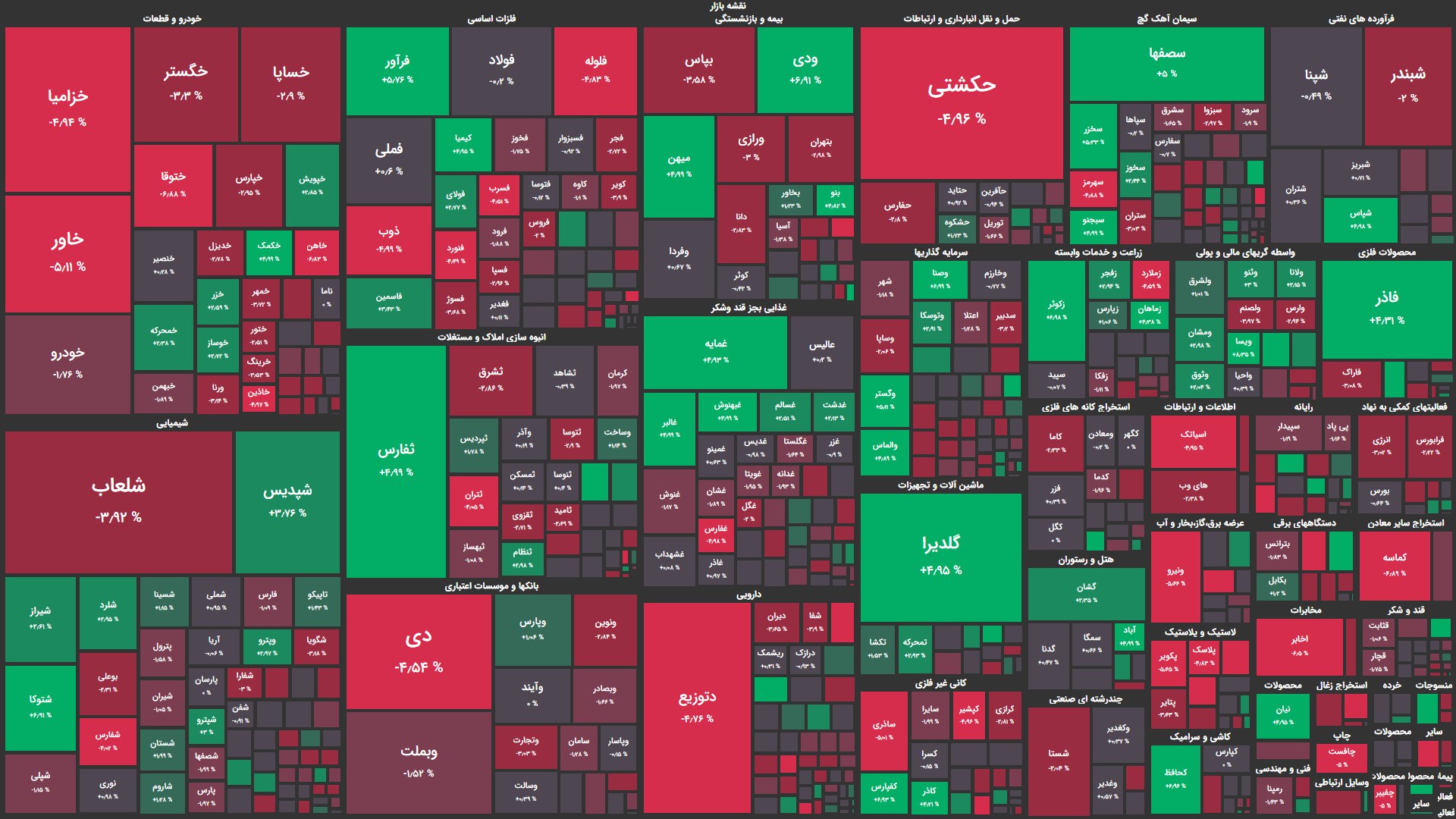 شاخص کل بورس با اُفت ۳ هزار و ۷۶۷ واحدی در تراز ۱ میلیون و ۹۹۶ هزار و ۷۵۷ واحدی ایستاد.