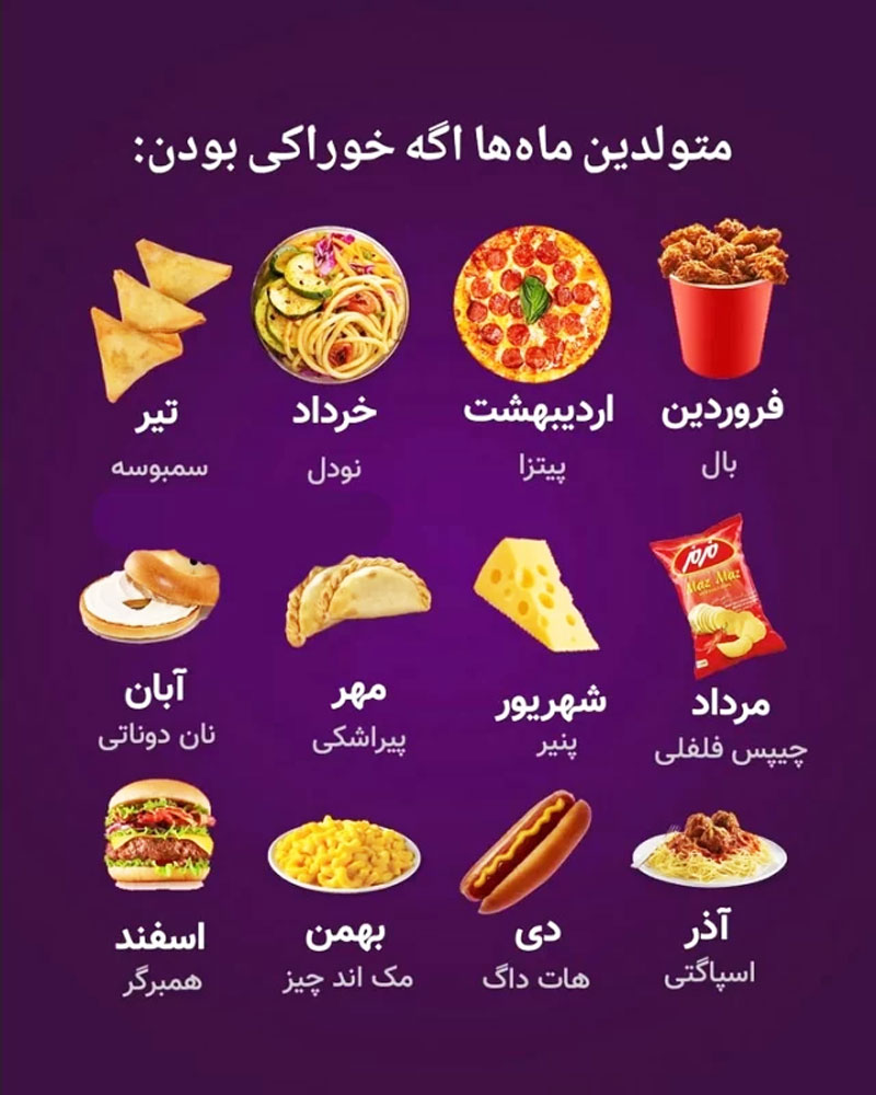 اگر متولدین هر ماه خوراکی های خوشمزه و متنوع بودند هر کدام چه خوراکی میشدند ؟