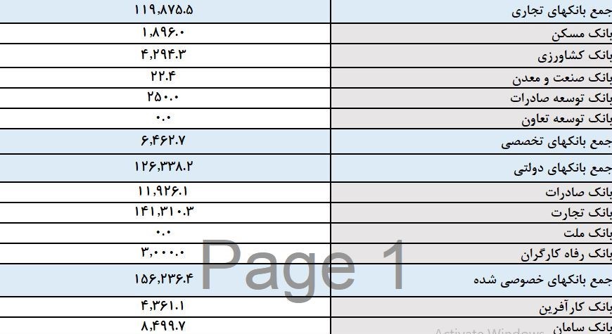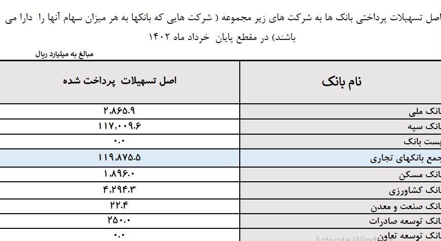 اطلاعات مربوط به تسهیلات پرداختی پست بانک، بانک توسعه تعاون، بانک ملت، بانک قرضالحسنه مهرایران، بانک قرضالحسنه رسالت، بانک ایران و ونزوئلا، بانک ایران زمین و موسسه اعتباری توسعه به شرکت های زیرمجموعهشان در این گزارش مشاهده نمی شود.