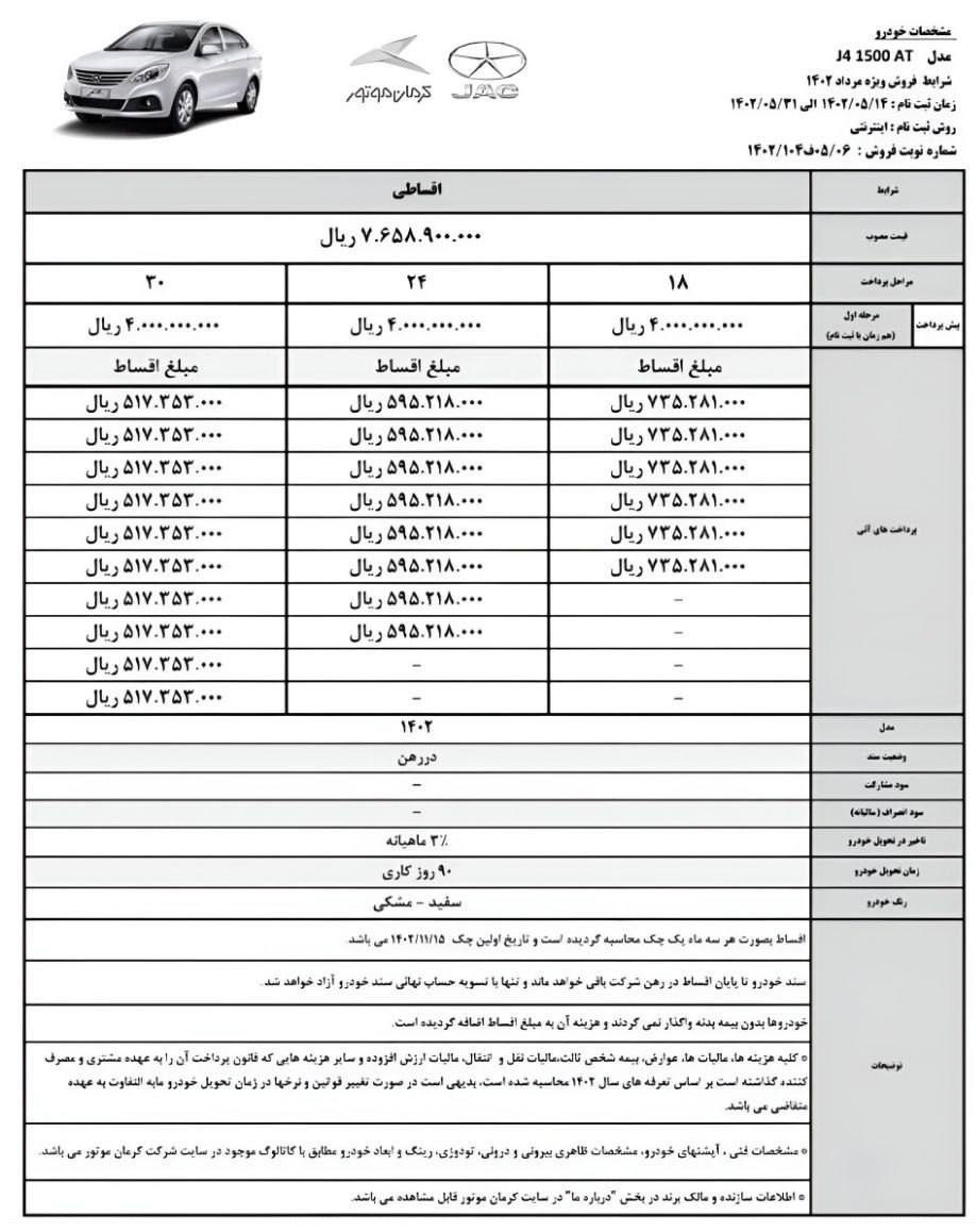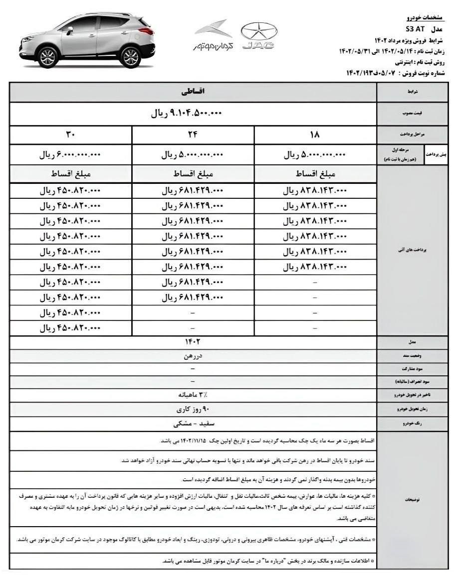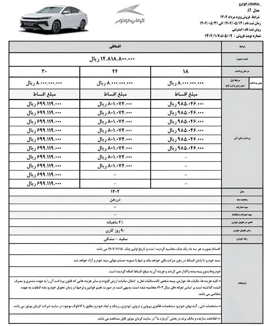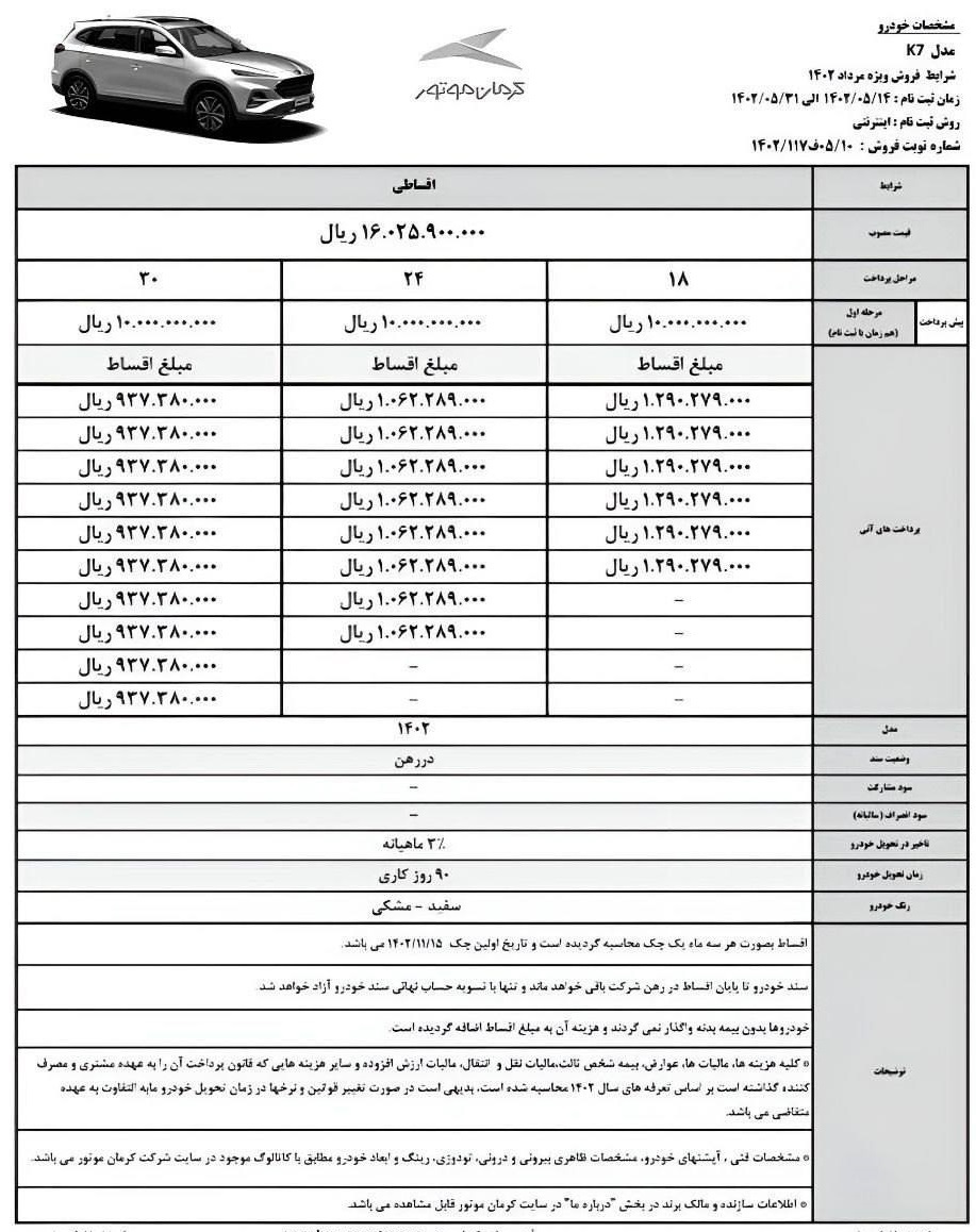 شرکت خودروسازی کرمان موتور در نظر دارد فروش تعدادی از محصولات خود را به صورت اقساطی از هفته آینده آغاز نماید.