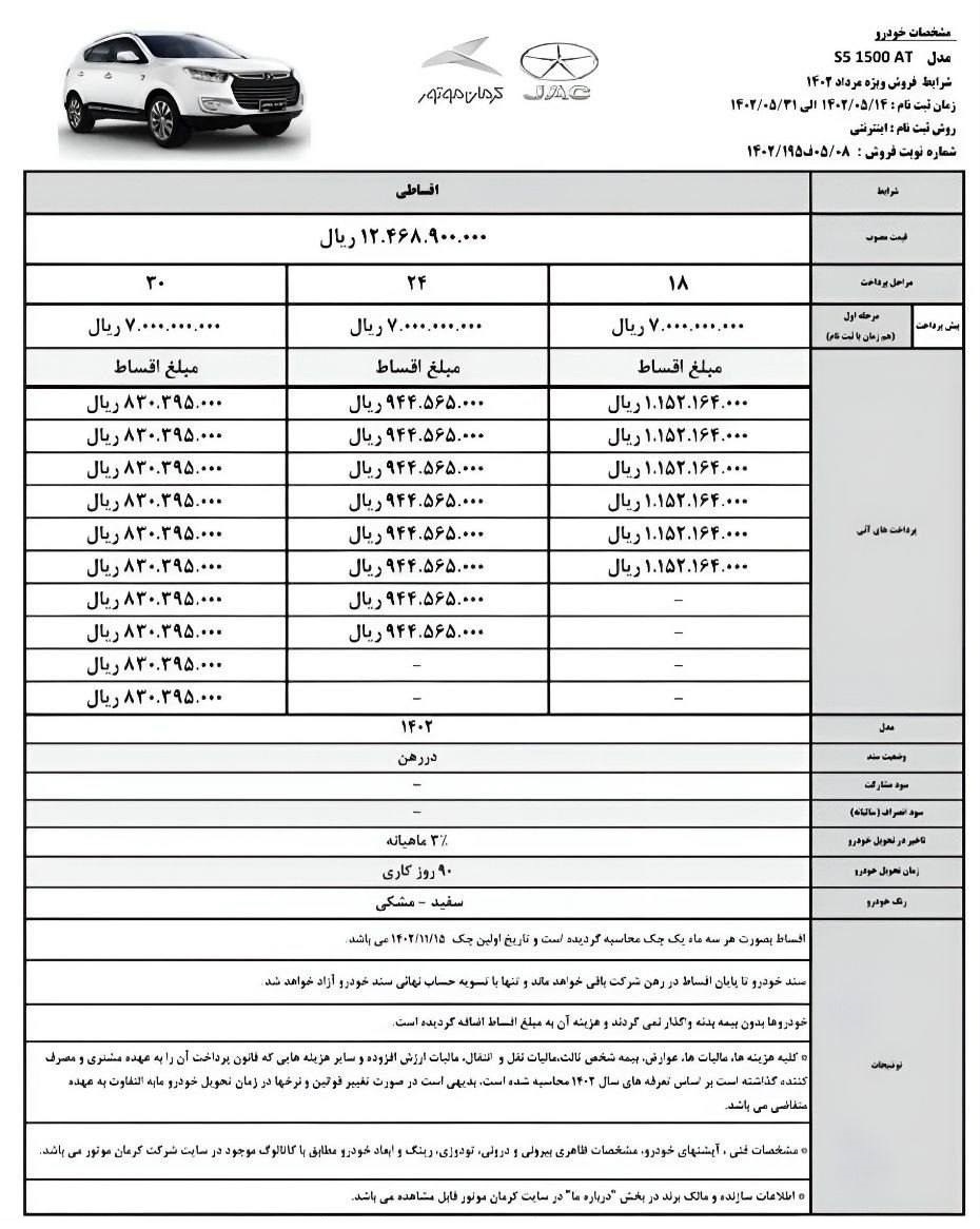به گزارش سایت طلا، شرایط طرح فروش اقساطی 5 محصول کرمان موتور ویژه مرداد 1402 اعلام شد.