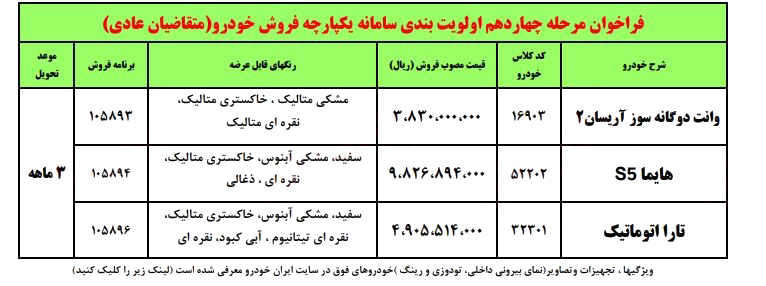 گفتنی است برای متقاضیانی که در الویت قرار گرفتهاند توسط شرکت ایران خودرو پیامک ارسال شده است تا با واریز پیش پرداخت در این طرح ثبت نام کنند.