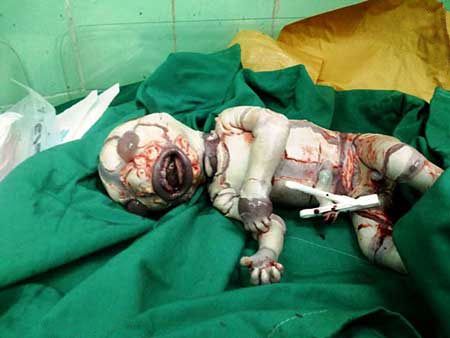 یک نوزاد ترسناک و عجیب الخلقه در شیراز به دنیا آمد! +عکس