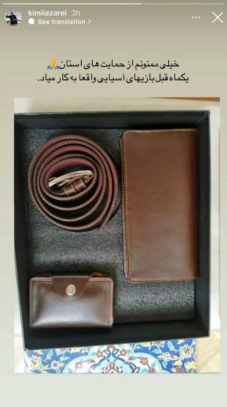 کیمیا زارعی تصویری از هدیه رییس هیئت قایقرانی استان همدان را استوری کرد.