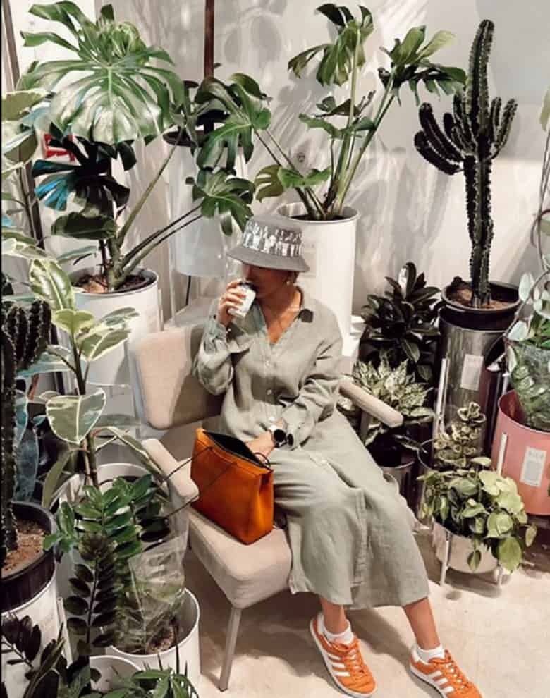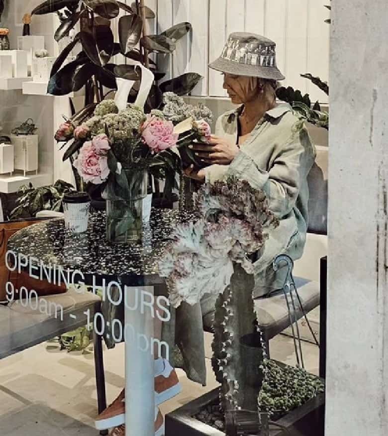 این بانوی خوشپوش که همواره استایلهای جذابی را از او دیدهایم، با مانتوی بلند جلو بسته. و کلاه کلوش طوسی رنگش در یک گلفروشی دیده میشود.